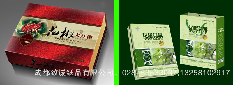 成都包裝廠專業(yè)定制:精品包裝盒、高檔禮品盒、特產(chǎn)包裝盒、紙盒、彩箱等一系列包裝制品,下面我公司為客戶簡析漢源花椒包裝盒的重要性。大家都知道,漢源花椒名列四川省“十佳地理標(biāo)志農(nóng)產(chǎn)品”榜首。漢源花椒的名氣已經(jīng)聲名遠(yuǎn)播了,但是還是需要精美的包裝盒提升商品的價值,促進(jìn)商品的銷售。例如,很大部分人在超市購物行為都是無目的性的,因為他們認(rèn)為這樣能減輕他們生活上的壓力。就是因為這一部分人的出現(xiàn),使得商品包裝的作用更加明顯。因為精美的商品包裝能引起消費者的興趣,甚至?xí)窍M者做出購買的決定,也因此促進(jìn)了銷售。